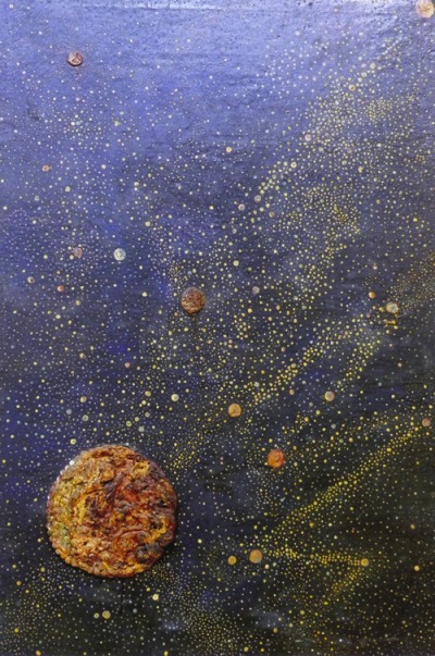 1961年 金子治男 14歳 100cm×66cm 油彩 宇宙の直径 : 10の26乗メートル 宇宙全体の電子の数 10の87乗個 宇宙の果て ;150億光年 = 15,000,000,000光年 1光年 = 9・46 × 10の15乗メートル = 9,460,000,000,000,000m = 9,460兆 m = 9兆4600億km ( 約 10兆 km ) 1光秒29万9千km 銀河の数 : 100億個以上 宇宙内には 10 0億 ~ 1000 億個以上の星雲がある。 私たちの銀河系の直径 : 9 × 10の20乗メートル。( 10 ~ 15万光年 ) (約100京km) 私たちの銀河系は、およそ20個の星雲から成る星雲団の一部である。 星雲団の中には、およそ1万個もの星雲を擁しているものもある。 宇宙全体の星の数 : 10の22乗個。(旧説) 最新説によると、宇宙全体の恒星の数は、3000垓と言われている。 3000垓 = 1000億の3兆倍 = 300,000,000,000,000,000,000,000 地球の直径 : 1.27×10の7乗メートル=12,700,000m=12,700km 赤道半径 : 6,378km 極半径 6,356km 太陽の直径 : 1.39×10の9乗メートル = 1,390,000,000m (139万km) 太陽の半径 : 地球の半径の 109倍 69万6千キロメートル 太陽の質量 : 地球の33.3万倍 1989 × 10の30乗キログラム ブラックホール 高密度で重力があまりにも強いため、物質も光も 放出できない天体。 月の直径 : 3476km 半径 1738km で地球の4分の1 質量は地球の81分の1 体積は地球の50分の1 月と地球の平均距離 : 384,400km 地球の直径の30倍 ビッグバン : 爆発による宇宙開びゃく論は果たして正しいものか どうかを考えて見る必要がある。単なる偶発的な爆発が宇宙内の 数学的秩序を生み出す事は考えられないからである。 宇宙がいかなる時計よりも正確に運行している事は、宇宙が偉大な 数学者であり創造者である神によって設計されたという明確な証拠 なのである。NO3の 宇宙の起源 の説明を読んで頂きたい。 注 : 上記に書かれている宇宙の直径、宇宙全体の電子の数、 宇宙の果て、宇宙全体の星の数は、世にある一つの説に過ぎず、 それは限られた範囲の宇宙の事であり、人間が観測出来る範囲内 の宇宙に過ぎない。それは生物の中にある細胞の一つに例えられる のである。しかし、実際には3次元界としての宇宙全体は、それよ りも遥かに膨大であり、人間には決して理解する事の出来ない、 広大無辺であり、それは数字で表す事のできな、無限大と言うより 他は無いのである(∞) |